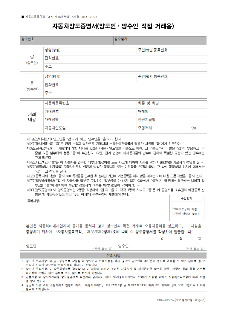 1. 자동차 명의이전 서류