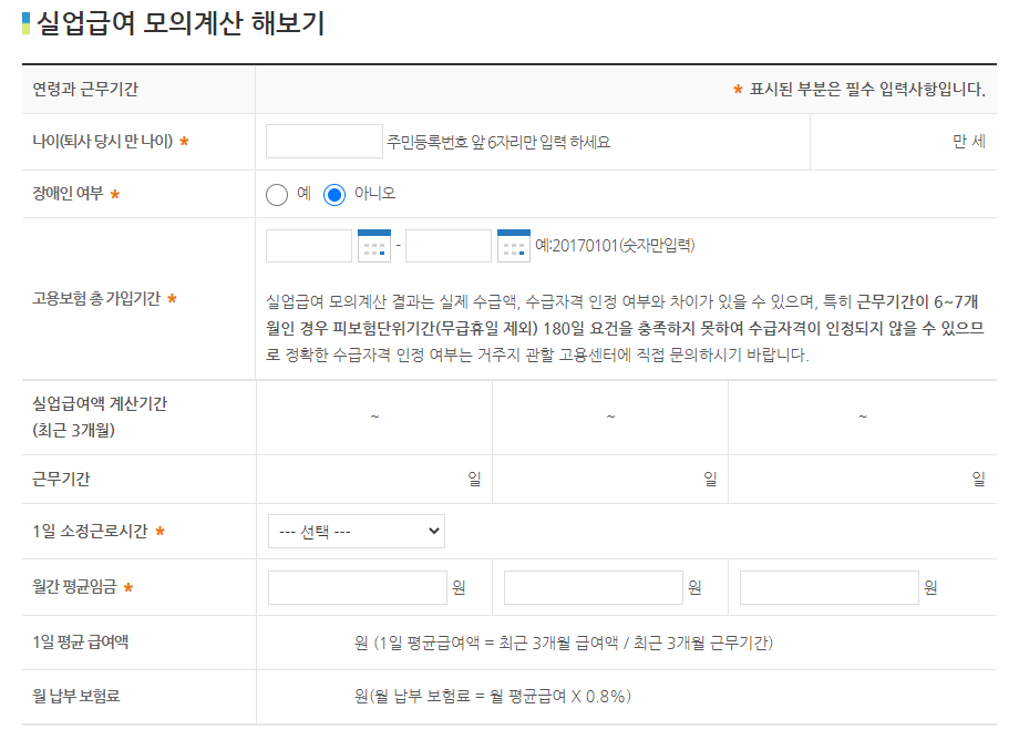 고용보험 제도 - 개인혜택 - 실업급여 안내 - 실업급여 모의계산