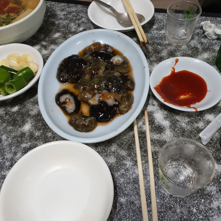 해삼과 오뎅, 닭꼬치 이렇게 3가지 메뉴를 시켰어요
