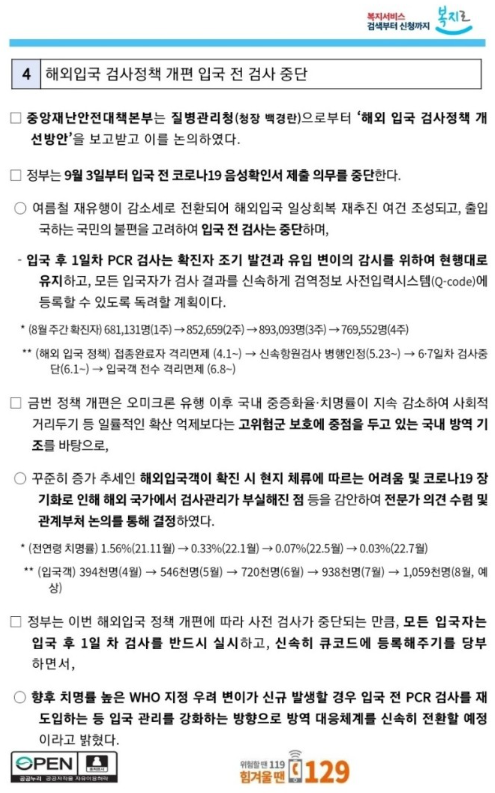 1. 해외 입국자 코로나 검사 폐지