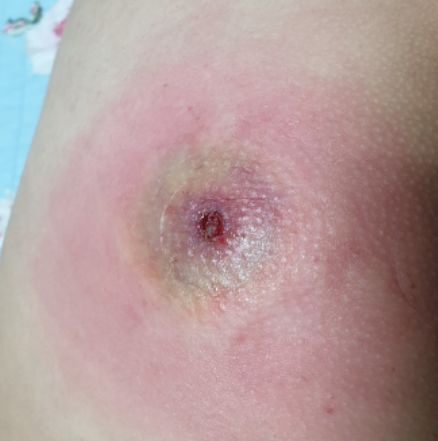 이 시기에 제대로 소독이나 관리해 주지 않으면 보라색 자반이 생기거나 다시 고름이 생겨 재발되는 경우도 있습니다.