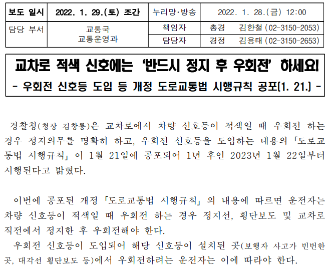 1. 교차로 우회전 통행방법