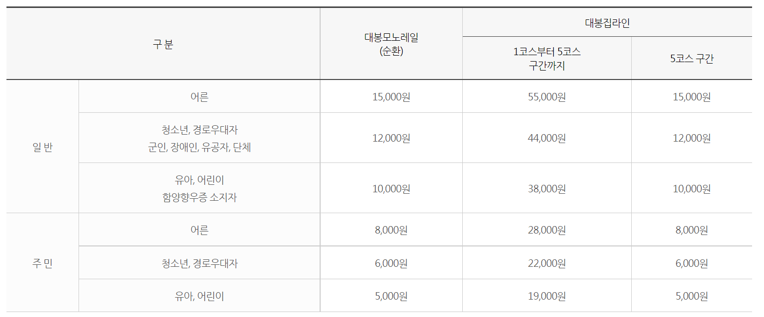 1.대봉산 휴양밸리 제1주차장에서 모노레일 탑승장까지 셔틀버스로 이동하기 때문에 예매시간 30분 전까지 여유있게 오셔야 합니다.