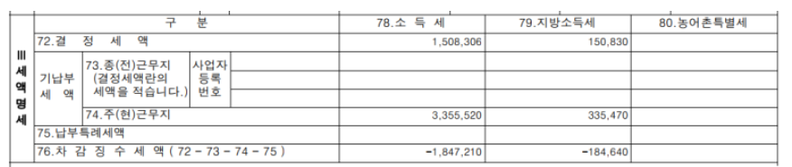 ⑤ 최종세금(결정세액) : 작년 1~12월동안 납입한 세금과 결정된 세금을 비교하여 세금을 부과합니다.
