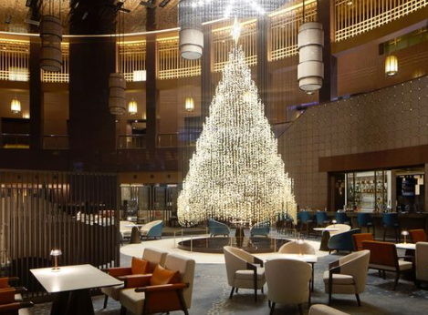 크리스털 장식으로 둘러싸인 대형 트리가 매년 크리스마스마다 찾아오는 인터컨티넨탈. 올해는 반짝이는 자개 장식 3만 피스로 구성된 7m 크리스마스트리가 로비 라운지에 장식되었습니다.