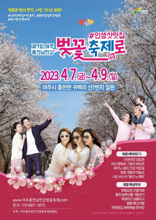 - 여주흥천남한강 벚꽃축제 : 2023.04.07 ~ 2023.04.09