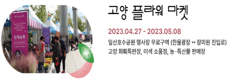 그래서 준비 된 고양 플라워 마켓입니다! 행사기간동안 운영되며 플라워 마켓은 티켓 없이도 들어갈 수 있는 무료구역에서 열립니다.