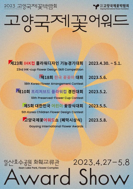 2023고양국제꽃박람회는 4월 27일 ~ 5월8일 총 12일간 경기도 고양시 일산호수공원에서 개최됩니다.
