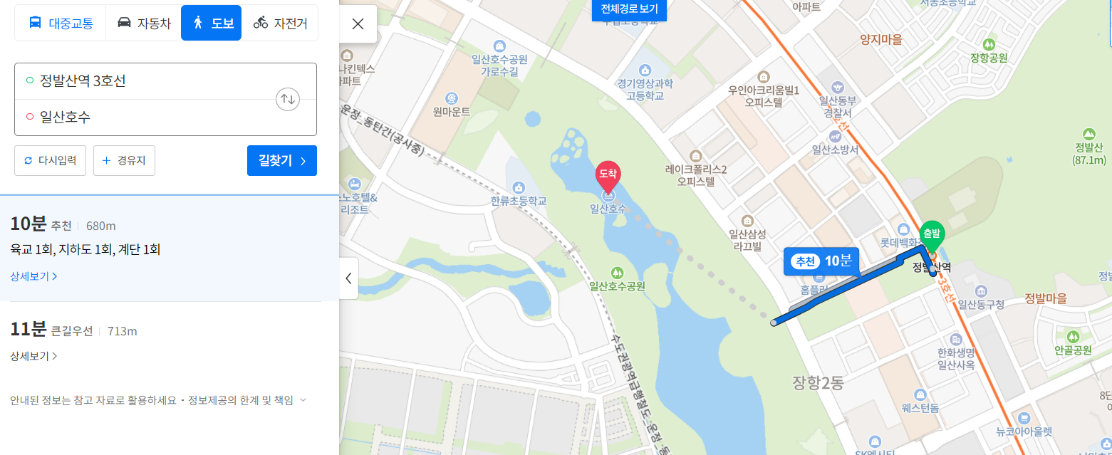 대신 3호선 정발산역에서 도보로 약 10분정도로 가까운 곳에 위치하고 있습니다.