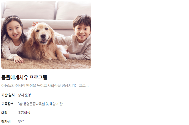 아래는 동물매개 치유센터에서 진행하는 프로그램입니다.