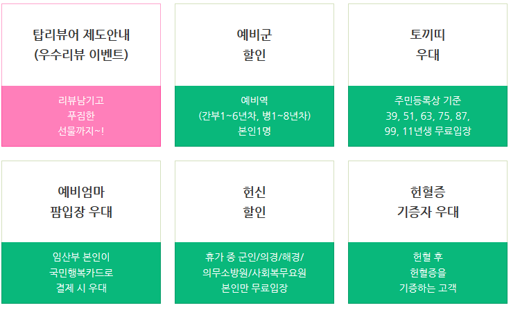 특히 *토끼띠 우대* << 100% 할인 해주는 거 실화인가요..?? 집에 토끼띠 있으면 꼭 가야 할 정보입니다 ㅜ.ㅜ