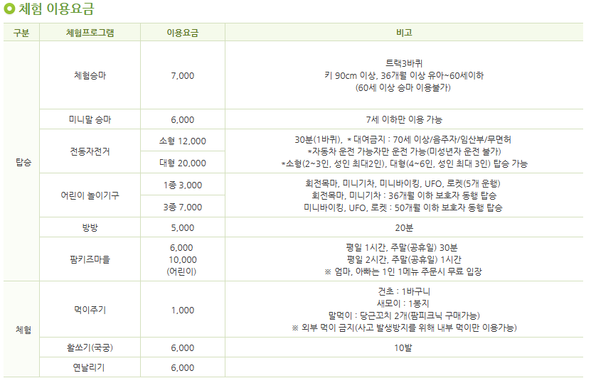 비교적 저렴한 요금대에 다양한 놀이기구와 체험을 즐길 수 있답니다^^ 특히 가축 먹이주기는 단돈 천원에! 동물들의 사랑을 한몸에 받을수 있다는 사실(!!)ㅋㅋㅋㅋ 정말 바구니 든 사람만 졸졸 따라와요 ㅋㅋㅋ 귀엽습니다.
