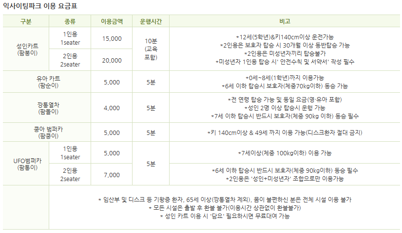 4월은 아무래도 날씨가 좋은 만큼 A요금제는 없고 B,C 요금제를 적용하고 있으니 가시는 날의 요금을 확인 하시기 바랍니다.
