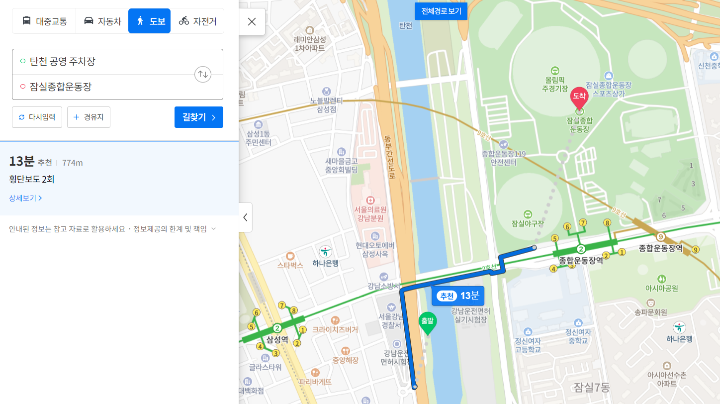 먼저 한강공원 잠실 3주차장이 바로 앞에 위치하고 있습니다.