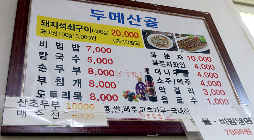 추천메뉴 : 칼국수, 돼지석쇠구이