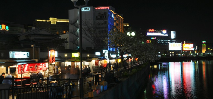후쿠오카 의 야외 음식 가판대(屋台, 야타이)는 이 도시의 가장 잘 알려진 상징일 것입니다. 야타이는 일반적으로 약 7~8명이 앉을 수 있으며 분위기 있는 야외 환경을 제공하여 일반적으로 간단하고 포만감을 주는 다양한 음식을 즐길 수 있습니다. 후쿠오카 전역에 수십 개의 야타이가 흩어져 있지만, 야타이를 찾기 가장 좋은 곳은 나카스 섬의 남쪽 끝에 있습니다. 도시 한복판에 위치한 나카스 섬에는 약 20개의 포장마차가 바다를 따라 아름답게 늘어서 있습니다.