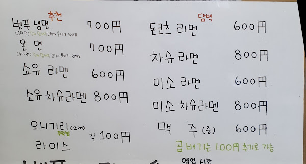 하지만 라멘을 좋아하신다면 여기 말고 후쿠오카.. 하카타 근처나 텐진 근처에서 드시는 것을 추천드려요..