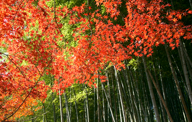 제주도의 대나무 숲 길은 가을에도 단풍 감상을 즐길 수 있는 곳으로, 대나무와 나무들이 함께 어울려 아름다운 풍경을 만듭니다.