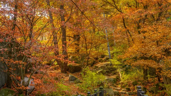 남한산성은 서울 근교에 위치한 역사적인 요새로, 가을에는 아름다운 단풍 숲이 펼쳐집니다. 성곽을 따라 산책하며 단풍을 감상할 수 있습니다.