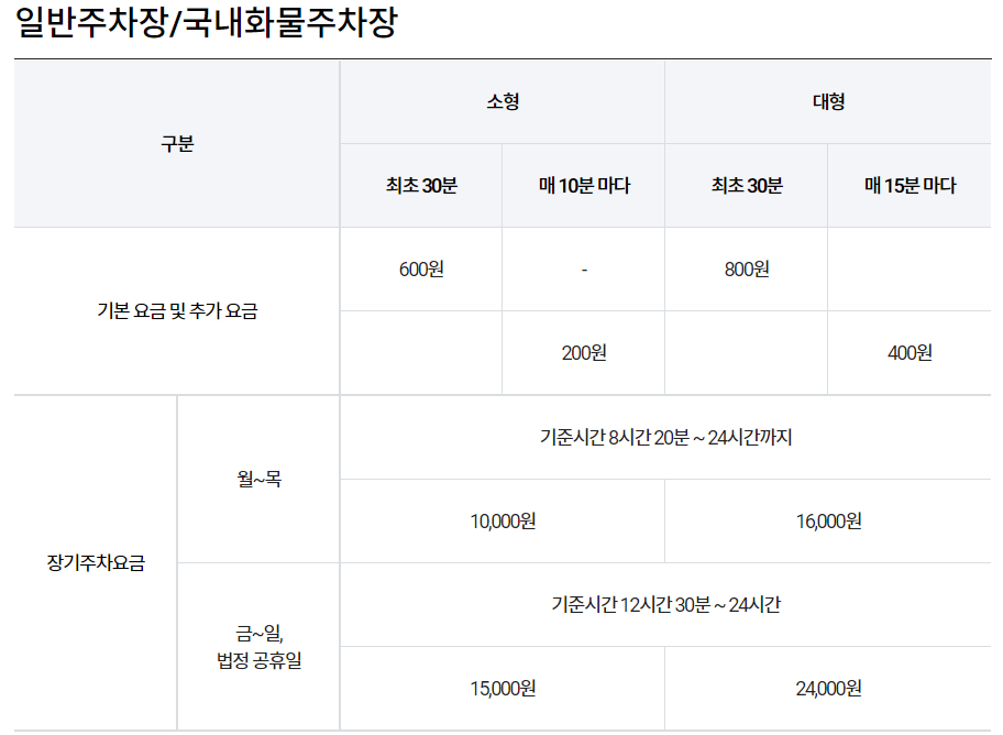 # 화물청사 주자장 요금은 공항 일반 주차장 요금과 동일합니다.