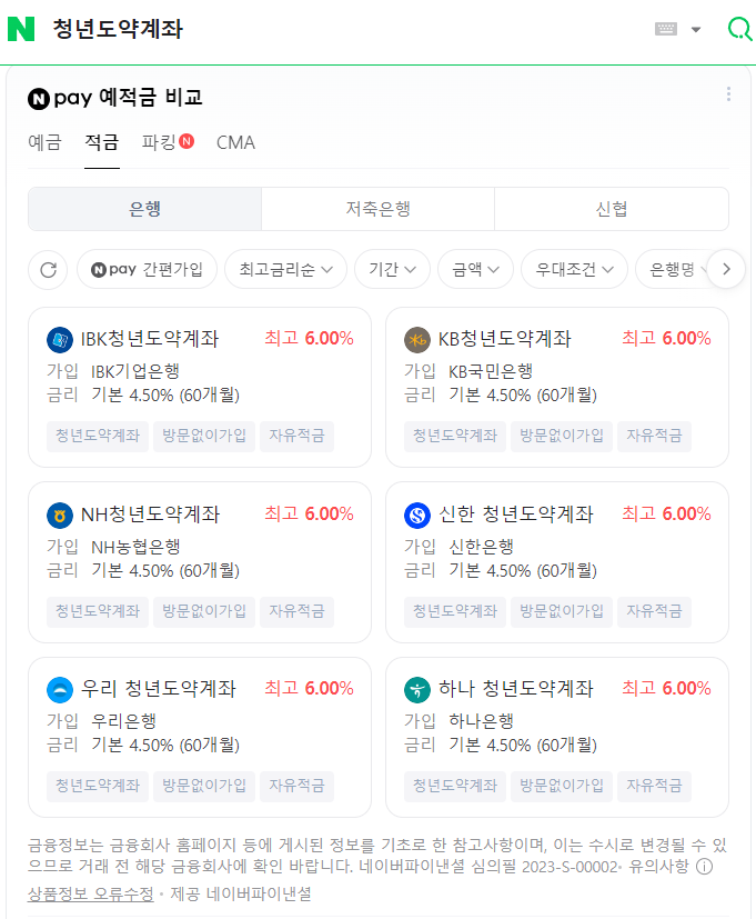 검색을 해보면 쉽게 비교를 할 수 있는데 다 똑같은 금리를 가지고 있네요