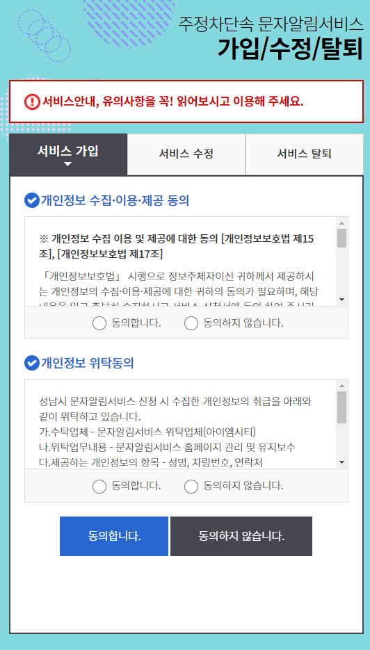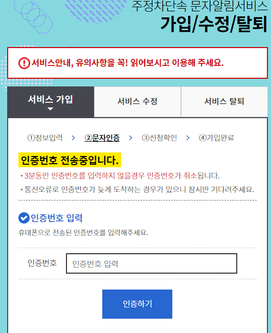 성남시 주정차단속 문자알림서비스 신청 방법