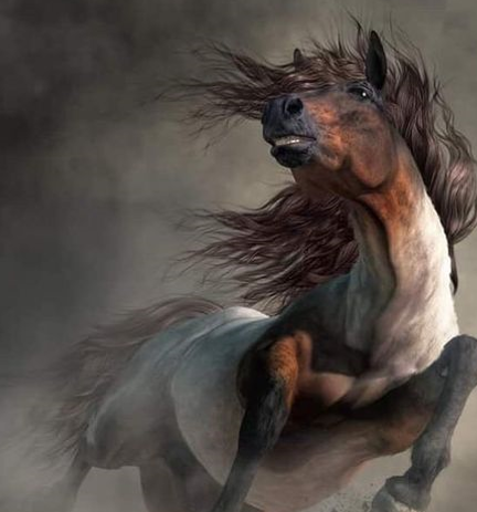 말이 앞발을 높이 들고 반가운 울음 소리를 내는 꿈