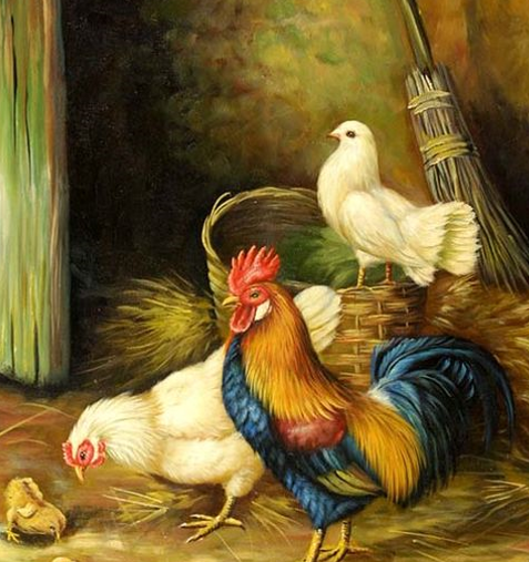 닭은 옛부터 출세와 명예의 상징으로 여겨졌습니다. 선비들은 수탉의 벼슬이 관을 쓴 모습과 유사하여 관직에 들어 출세하는 것이라 생각했고, 입신과 공명을 기원하는 의미로 서재에 닭 그림을 걸어두기도 했습니다. 또한 민간에서는 새벽을 알리는 수탉의 울음이 사악한 것을 물리쳐서 복되고 길하다고 여겼으며, 암탉은 알을 낳는 풍요와 다산을 의미했습니다. 꿈에서 등장하는 닭은 관직, 명예, 종자돈 등을 상징합니다.