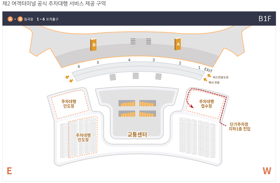 - 단기주차장 지하1층 주차대행 전용 접수장을 제외한 타 주차구역에 주차 시 단기주차장 요금이 발생합니다.