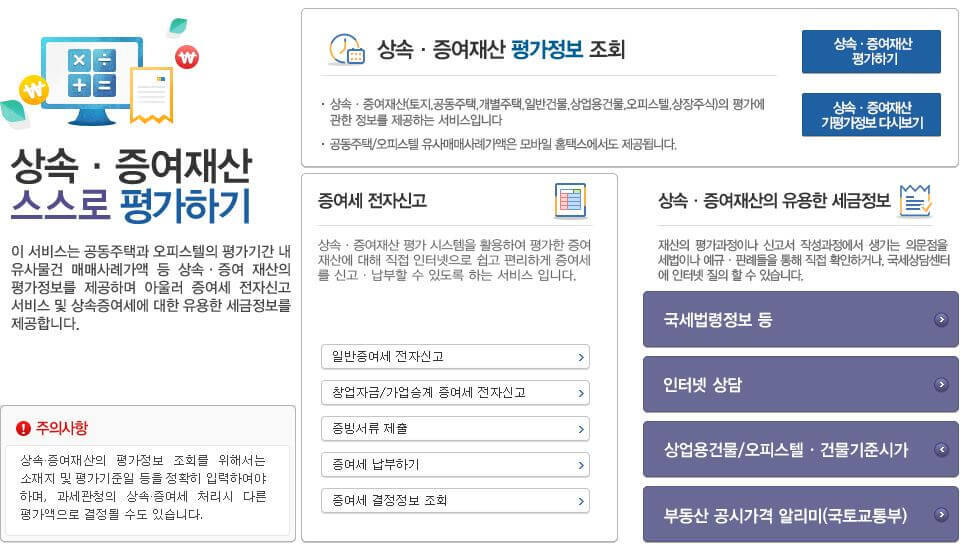 국세청 홈텍스를 이용하면 편리하게 평가를 할 수 있습니다.