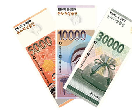 온누리 상품권은 전통시장 활성화를 위해 만들어진 정책성 상품권입니다.