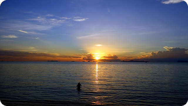 - 해변에서 평화로운 물속에 떠 있는 꿈 해몽