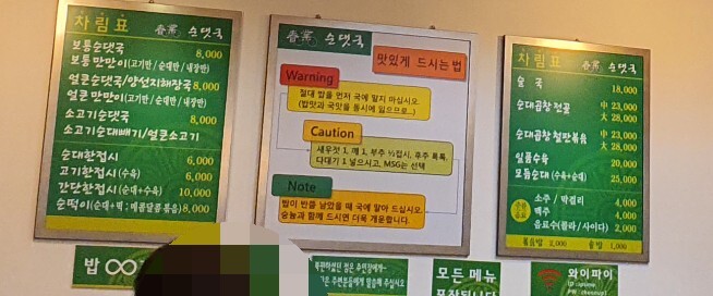 저는 가끔 동기들과 가서 먹을때는 순대국과 고기 한접시 시켜서 소주도 한명 먹기도 합니다. ㅎㅎ