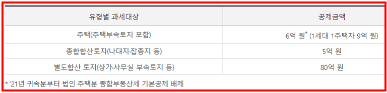 종합부동산세 = 공제금액을 초과하는 경우 그 초과분에 대하여 과세되는 세금.